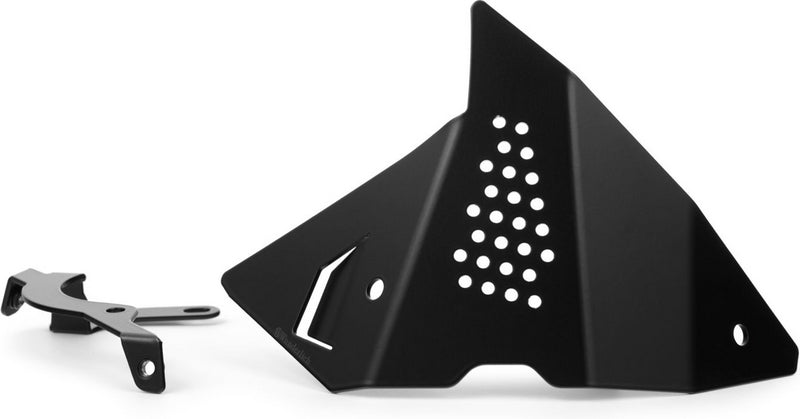 フューエルインジェクションシステムのカバーは、インジェクターチューブ、ライン接続部、スロットルセンサーを含むインテークパイプエリアを保護します。プラグイン接続部は、ブーツやズボンに何度も引っかかって緩んでしまいます。アルマイト加工されたこの保護カバーがあれば、そのようなことはありません。