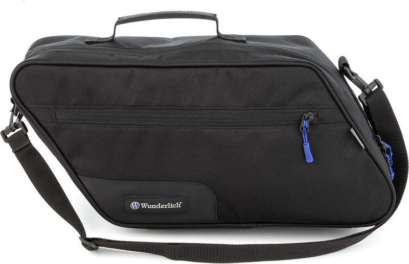 CORDURA®製ケース用インナーポケットは、完璧な仕上がりと堅牢さを誇ります。ブルーのインナーライニング、調節可能なキャリングストラップ、人間工学に基づいた実用的なキャリングハンドルを備えたこのバッグは、エレガントに組み立てられ、便利なトラベルバッグとしても使用可能です。ファスナーで閉じることのできる、たっぷりとしたインナーポケットが付属しています。BMW純正ケースおよび類似の形状のケースに対応した専用インナーポケット。