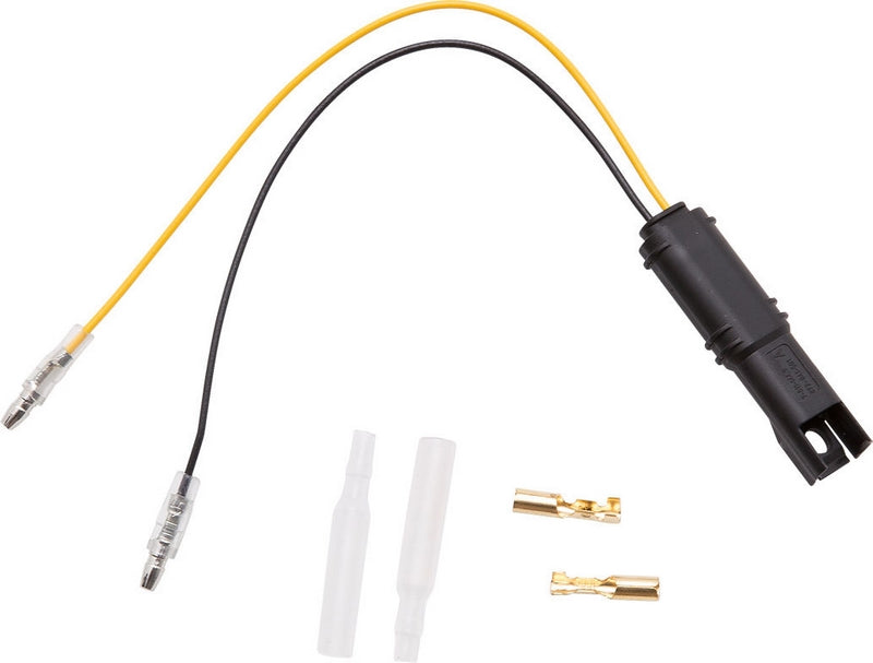 このアダプターを使用すると、フロントインジケーター(ハンドルバーマウントインジケーターなど)を簡単に変換することができます。オリジナルのフロントインジケータープラグの代わりにモーターサイクルにはめ込むだけで、実用的な丸型プラグを使ってアクセサリーインジケーターケーブルに接続することができます。完了!