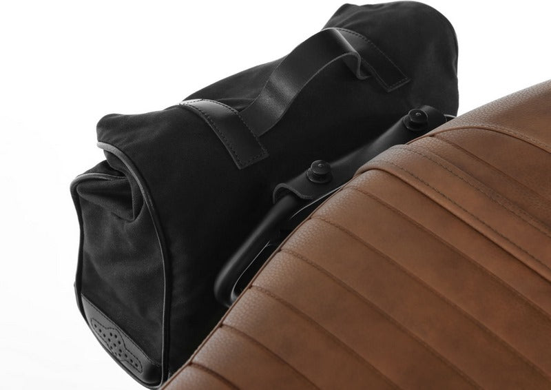 バッグはホルダーの下部にスライドし、上部は2つのLOXXクロージャーで固定されています。