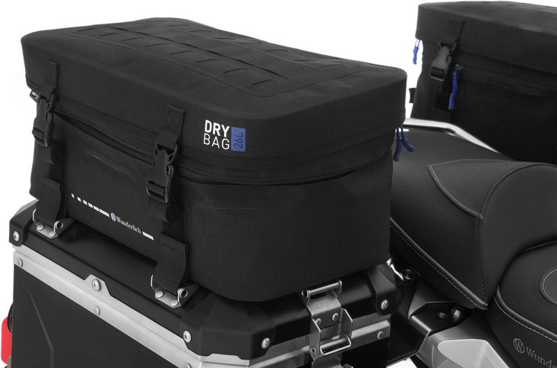 ELEPHANT DRYBAGのケーストップバッグは、サイドケースに取り付けて使用します。これにより、長距離ツアーの理想的なパートナーとなります。精密に製造されており、快適で安全な取り付けシステムを備えています。例えば、EXTREMEケース、Adventure用のオリジナルアルミケース、GSモデル用に自社開発したオリジナルVarioプラスチックケース用の試行錯誤されたラゲッジレールなど、アイレットを装備したケースに取り付けることができます。また、トップバッグを装着した状態でもケースを開閉することができます。裏面は塗装に適した滑り止め加工が施されているので、擦り傷がつくこともありません。18リットルの余裕のある容量は、プルアウトを使用することでさらに8リットル拡大し、26リットルにすることができます。プルアウトへのアクセスには、オールラウンドファスナーを採用しています。