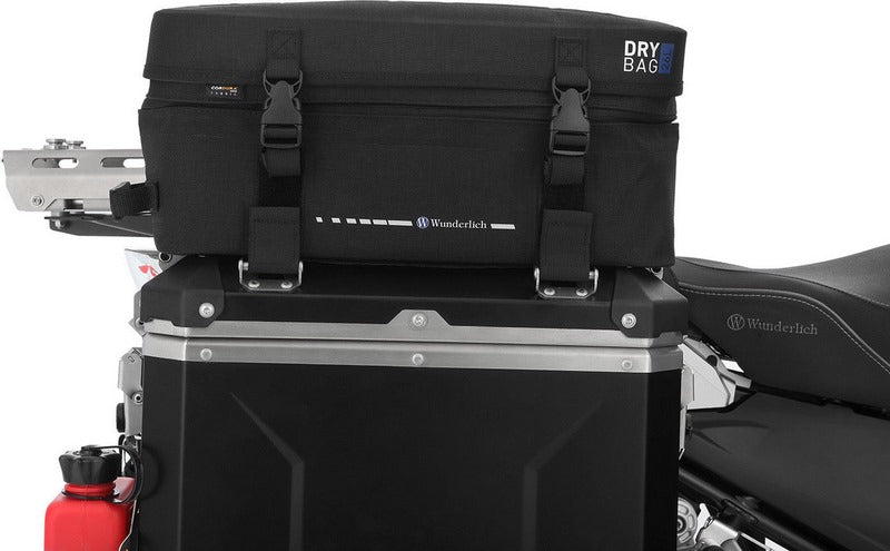 ELEPHANT DRYBAGのケーストップバッグは、サイドケースに取り付けて使用します。これにより、長距離ツアーの理想的なパートナーとなります。精密に製造されており、快適で安全な取り付けシステムを備えています。例えば、EXTREMEケース、Adventure用のオリジナルアルミケース、GSモデル用に自社開発したオリジナルVarioプラスチックケース用の試行錯誤されたラゲッジレールなど、アイレットを装備したケースに取り付けることができます。また、トップバッグを装着した状態でもケースを開閉することができます。裏面は塗装に適した滑り止め加工が施されているので、擦り傷がつくこともありません。18リットルの余裕のある容量は、プルアウトを使用することでさらに8リットル拡大し、26リットルにすることができます。プルアウトへのアクセスには、オールラウンドファスナーを採用しています。