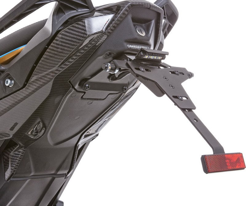XRでは邪魔だったナンバープレートホルダーとウインカー、テールランプユニットをテールに近づけたテールセクションです。1000の横方向のラインが、よりまとまりのある力強いものになります。ライセンスプレートホルダー+ライセンスプレートライトがセットになっています。テール部には、オリジナルのシートロックを取るための開口部が設けられています。