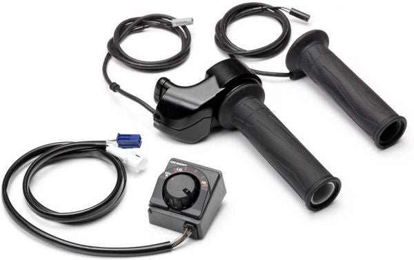 標準のユニットグリップに代わる電気加熱式のハンドグリップ。スイッチブラケット付属