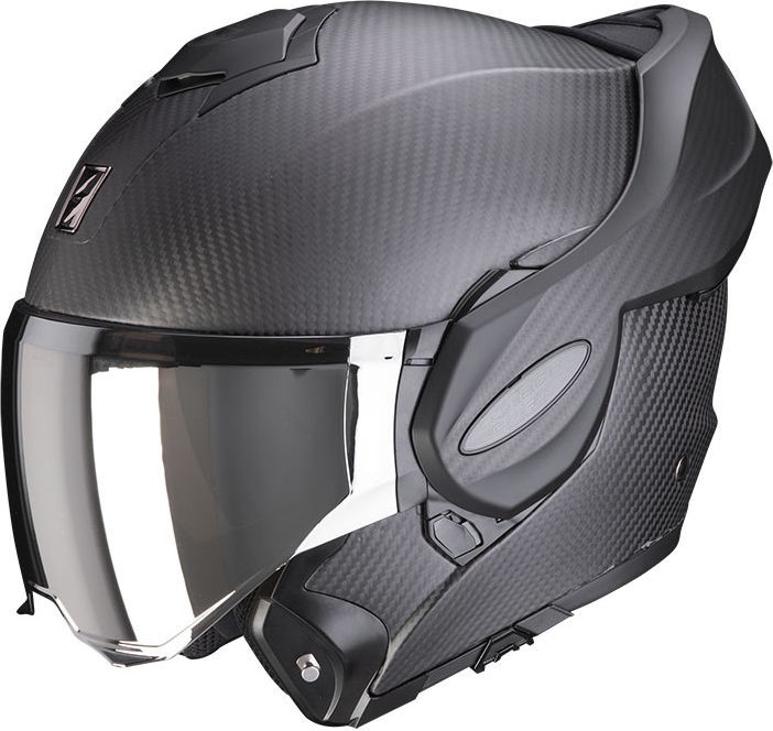 Scorpion’s flip-back masterpiece is coming back with carbon composite shell. EXO-TECH EVO Carbon is alight-weight-flip-back helmet with all easy operation and convenient features plus chin bar locker for bettersafety.Small, sleek, and real full face looking shell design is still the same but with elegance and premium woven carbon fiber surface adds an outstanding nobility. EXO-TECH EVO Carbon comes with an EXO-COM bracket that perfectly harmonizes the helmet and the EXO-COM designs.Carbon Fiber2 shell dimensions: XS-L, XL-XXL.ECE R22.06 P/JUltra TCT Carbon- Developed byScorpion EXOTM, revolutionary new pre-preg technology offers unrivaled protection.Extremely light, digressive integrity on impact absorbs more energy.ECE-P/J Locking SystemSpeedview- Retractable Sunvisor- treated with antifog on both sides.Pinlock Original 3DDark Smoke shield includedQuick Release/One Touch BuckleKwikwick 3- KwikWick® anti-microbial fabric keeps you cool and dry in warm weather, warm in cool weather Liner is easily removable and washable. The KwikWick® have 3D cheek pads.Kwikfit- KwikfitTM cheekpads allow use of most common styles of eye glasses.5 year warranty