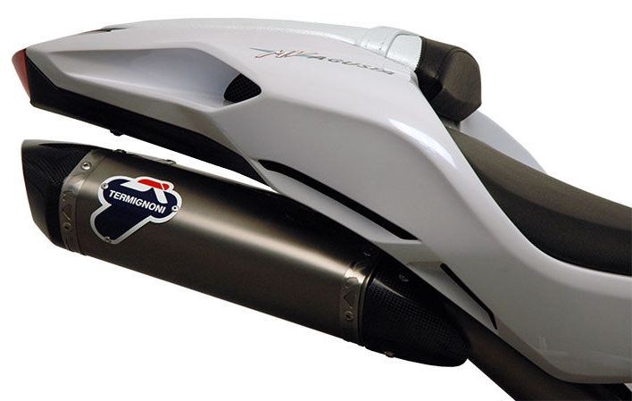 IMPIANTO DI SCARICO COMPLETO Termignoni offers the complete racing system in full titanium, MV11 code, characterized by the exclusive design “Force” dedicated to MV AGUSTA F4 (year 2010-2016).The titanium sleeve is developed with a carbon cap with removable db killer and full titanium manifolds, to give your bike even more lightness and power at all speed range.Be careful the complete system fits only removing the original plate holder.Full titanium