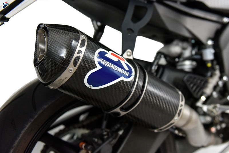Termignoni has developed the complete exhaust racing, made of titanium with silencer in carbon.
