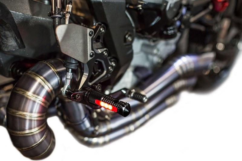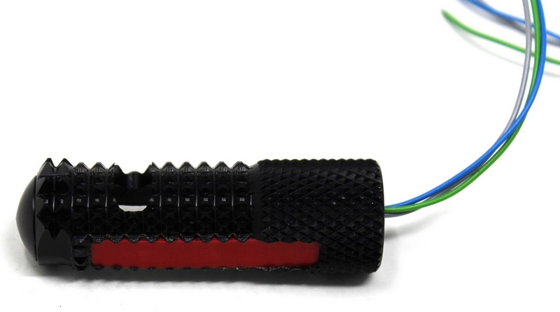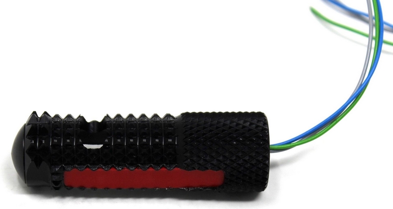 Footrest with red led light. Functions: rear light and brake light. Alu alloy made. Compatible only with VMC rearsets model 1.5 - 2.5 - 3.5.