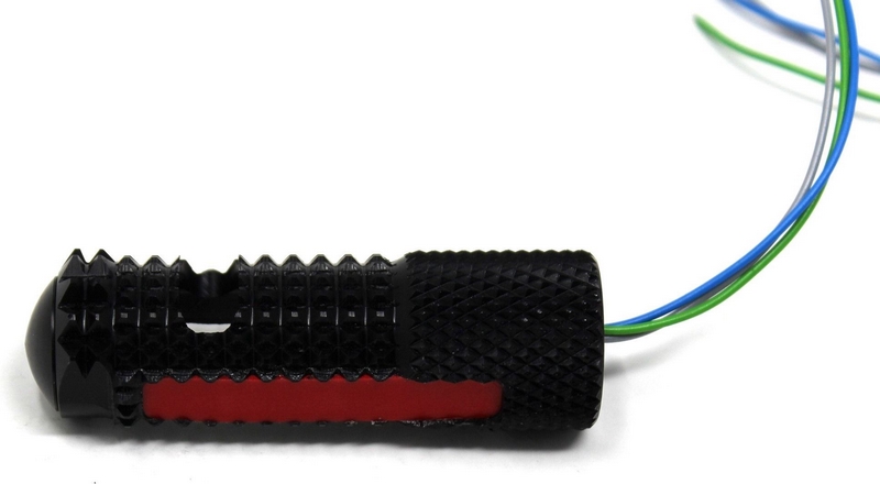Footrest with red led light. Functions: rear light and brake light. Alu alloy made. Compatible only with VMC rearsets model 1.5 - 2.5 - 3.5.